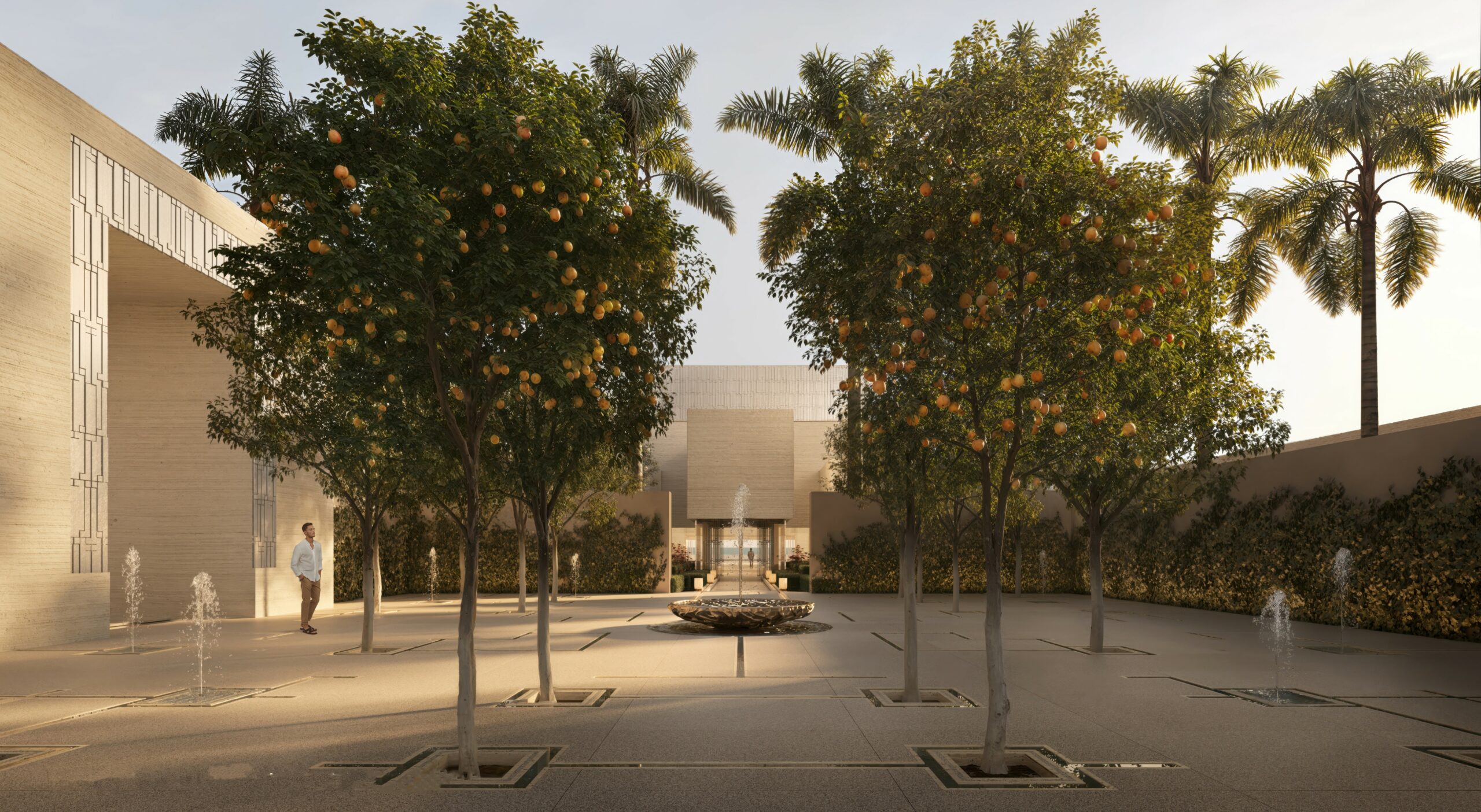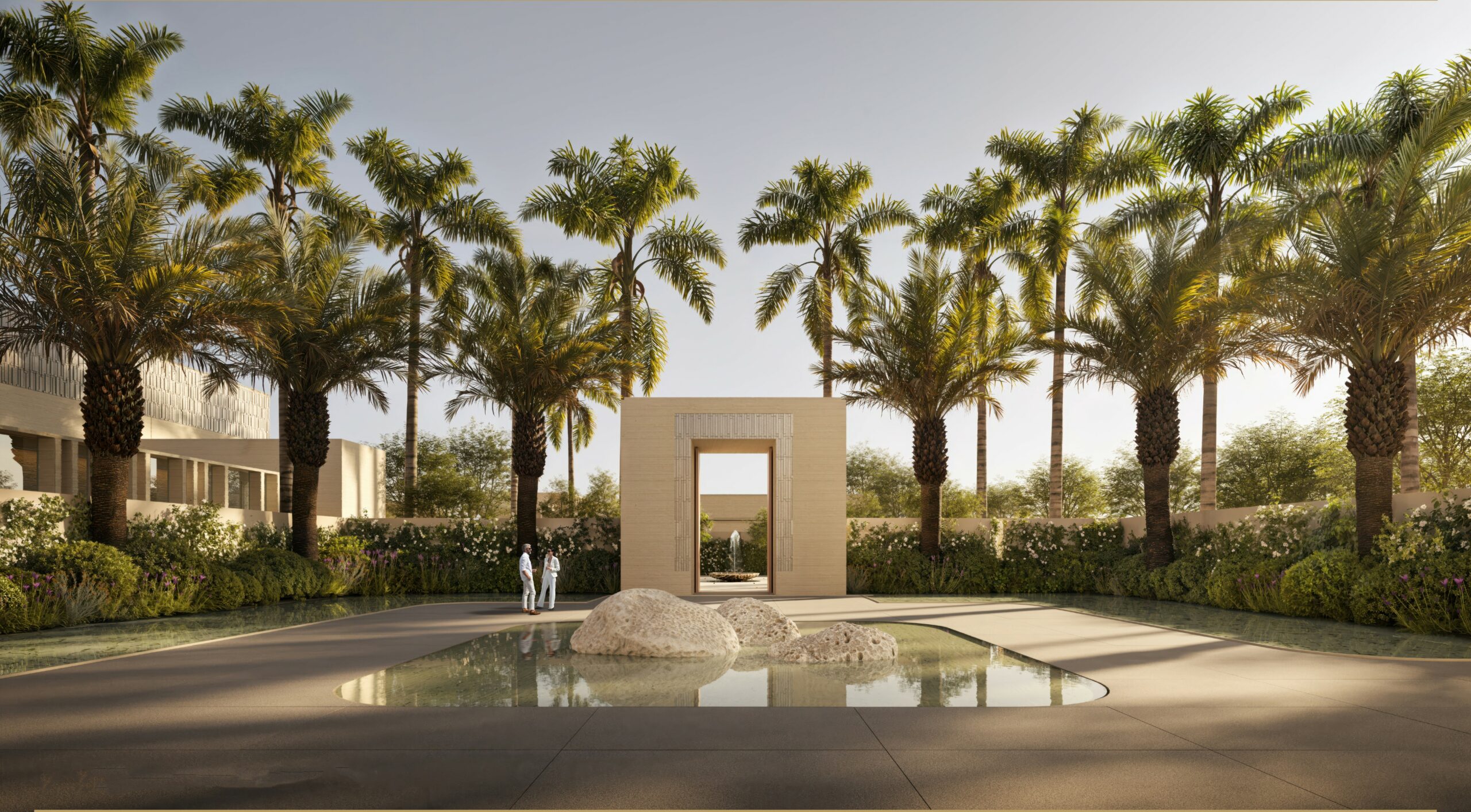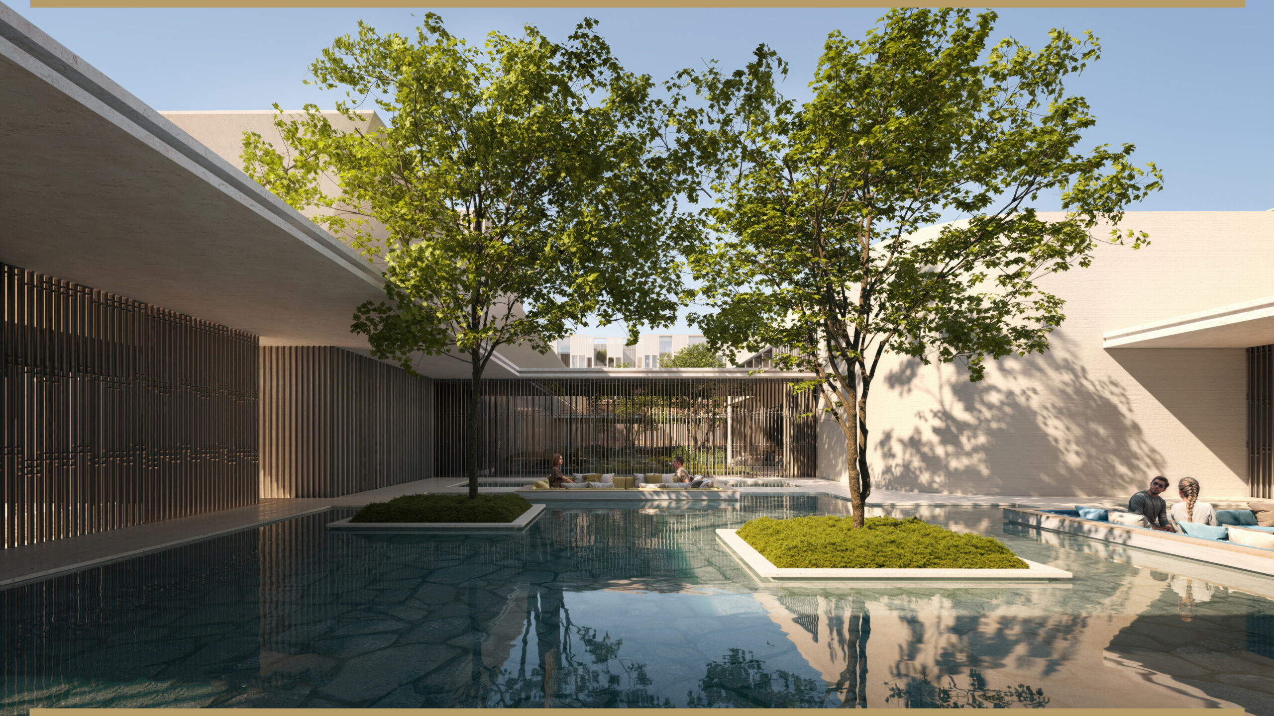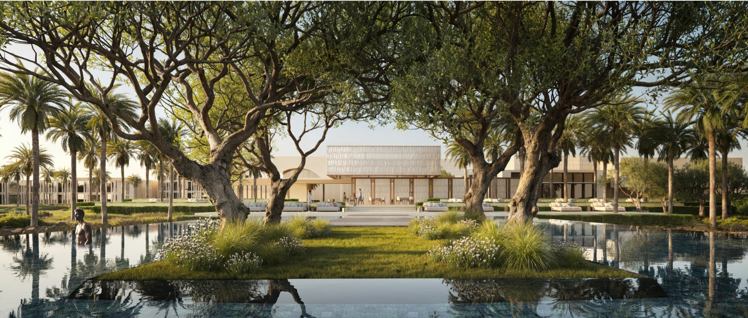 Chenot Medical Wellness Resort is a redevelopment of a coast in Saudi Arabia into a premier destination for holistic health, preventive medicine, and wellness, extending the internationally recognized expertise of the Swiss Chenot brand. The project is conceived as a seamless integration of architecture, landscape, and therapeutic programs, designed to offer guests a transformative experience in a serene, restorative environment. The island’s landscape framework is carefully composed to harmonize desert, coastal, and marine elements, creating open, regenerating spaces that connect visitors with the rhythms of nature while promoting well-being. At the territorial scale, the design reshapes the island through regenerated shorelines, ecological corridors, and landforms inspired by dunes, wadis, and coastal terraces, forming a coherent spatial organization that supports both the wellness programs and the island’s ecology. Within this overarching landscape vision, the accommodation patios for patients play a central role in translating wellness into everyday experience. These patios are conceived as intimate, sheltered gardens that provide visual, acoustic, and thermal comfort, enabling daily interactions with nature that support recovery and mental balance. Designed with layered vegetation, reflective water features, and shaded pathways, each patio becomes a personal sanctuary that extends the therapeutic program outdoors. The material palette natural stone, sand, and drought-tolerant plantings—reinforces a sense of calm and connection to the island’s environment, while the spatial arrangement allows for walking, meditation, and contemplative activities. Together, these redesigned patios create a network of micro-landscapes that embody the Chenot philosophy: integrating architecture, landscape, and medical wellness into a unified, immersive experience for all guests.